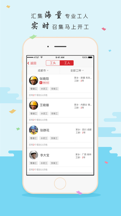 打造了專屬建筑工友們自己的工作交流、生活娛樂生態(tài)圈。有效的連接了工人、工頭和企業(yè)三方,為構建一個美好的建筑用工環(huán)境而努力!