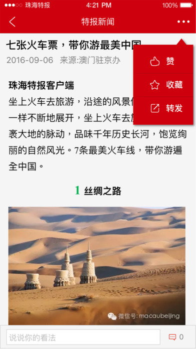 珠海特報(bào)客戶端基于用戶大數(shù)據(jù)和全面豐富的珠海本地內(nèi)容源,為生活在珠海的用戶量身打造移動閱讀享受,提供全場景閱讀體驗(yàn),智能推薦豐富的視聽新聞……時刻注重滿足用戶多樣化、個性化的資訊需求。珠海特報(bào)客戶端堅(jiān)持本地化的高質(zhì)量原創(chuàng)內(nèi)容,將推出《頭條》、《時局》、《民生》、《樂活》等原創(chuàng)欄目?!皺?quán)威資訊,精彩生活”是珠海特報(bào)客戶端最具特色的部分。【更新日志】