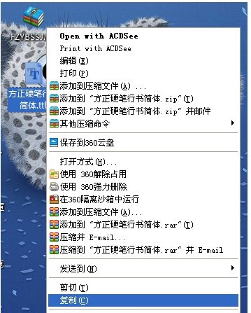也是很簡單的,首先就是把字體解壓出來,復(fù)制得到字體文件TTF,