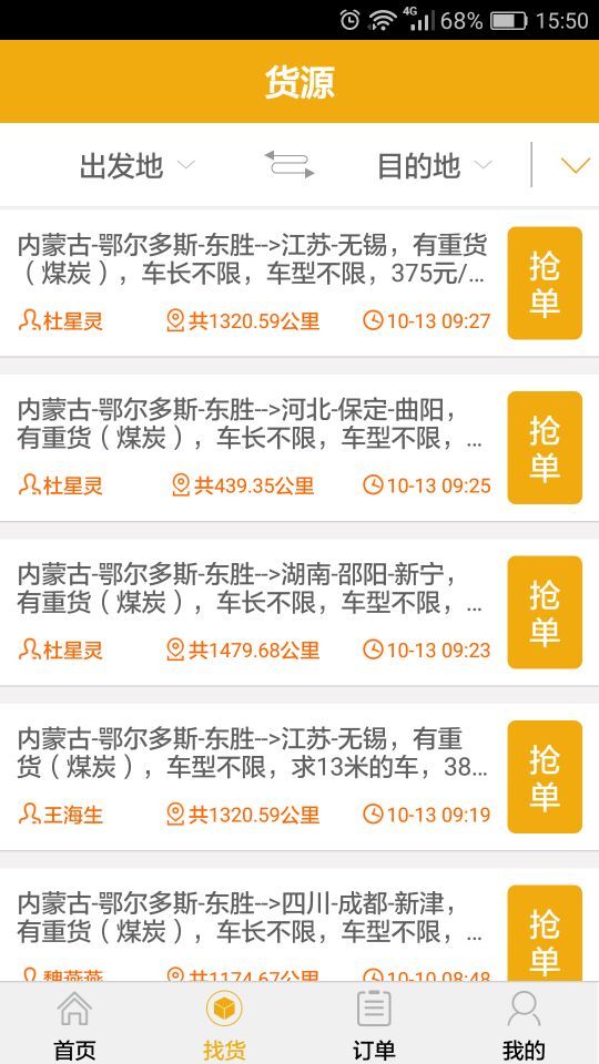貨主發(fā)布貨源后,司機(jī)一鍵搶單,平臺(tái)發(fā)送短信實(shí)時(shí)通知貨主。