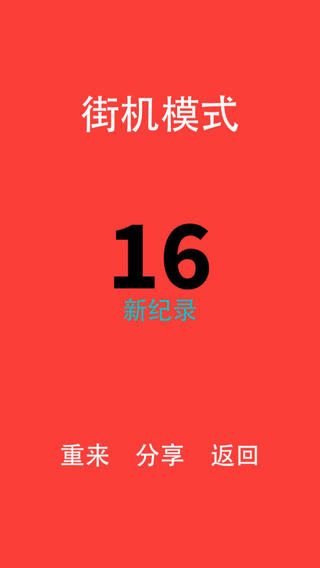 街機模式:游戲結(jié)束之后還可以分享或者重來;高分攻略:注意力集中,手要快。