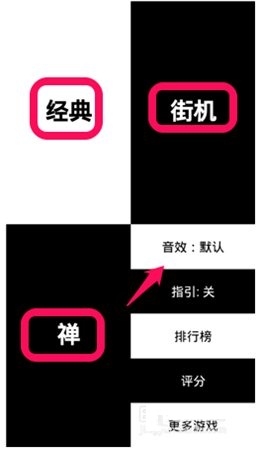 打開游戲之后,這里分別有3種模式:經(jīng)典、街機、禪,在音效這里可以開啟選擇聲音類型或者關(guān)閉聲音。