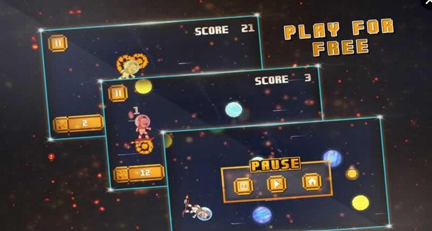 畫面是懷舊復(fù)古的像素風(fēng)格,讓我們跟著mr.ppap飛過太空里各種不同的星球吧!