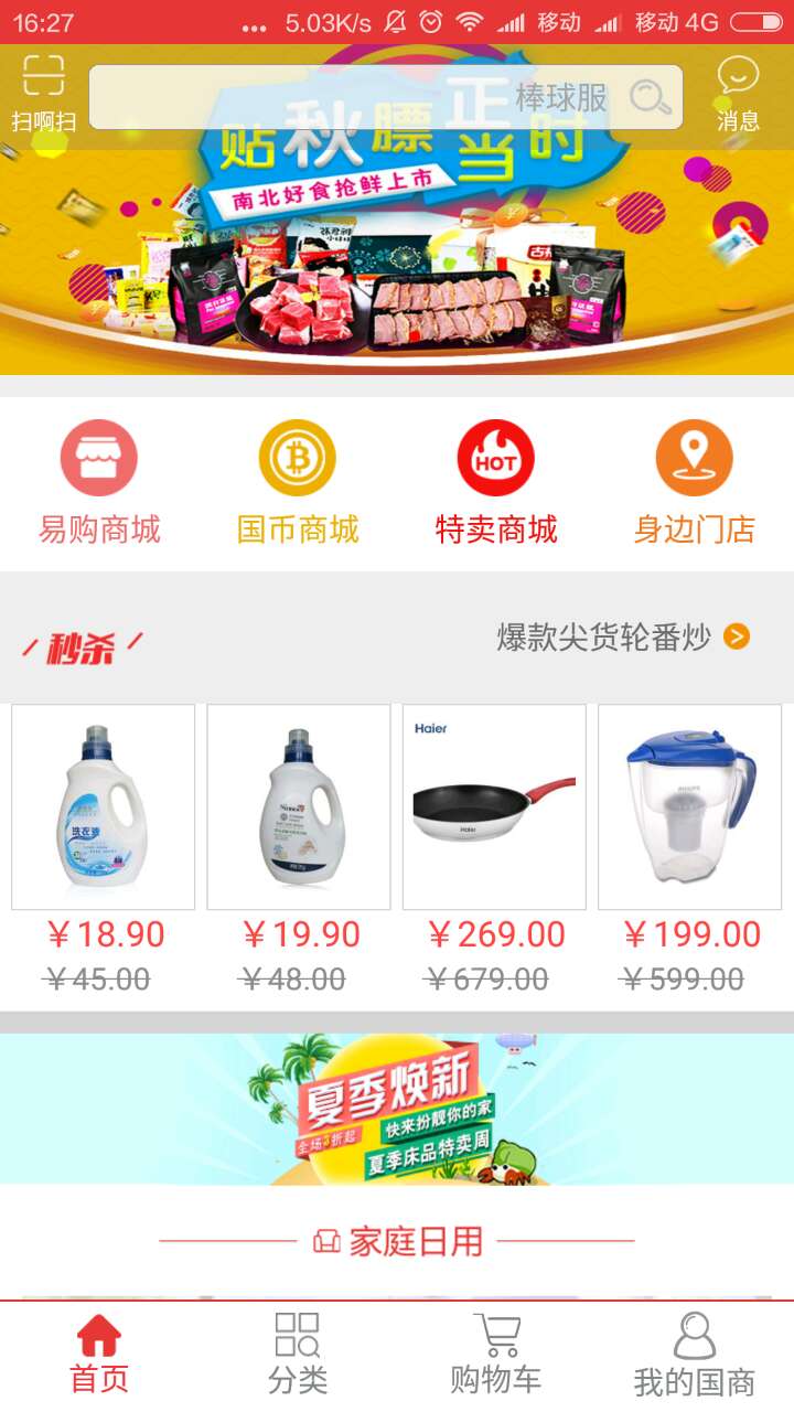 國(guó)商易購(gòu)安卓版是一款手機(jī)購(gòu)物優(yōu)惠app,商品豐富,類(lèi)目齊全,用戶(hù)可以在這里購(gòu)買(mǎi)各種自己需要的商品,更有秒殺活動(dòng)等你來(lái)。讓用戶(hù)既省錢(qián)、又可以買(mǎi)到自己想要的東西。