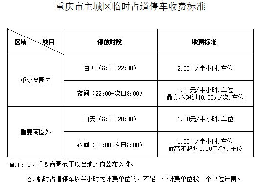重慶停車費收取標(biāo)準(zhǔn):