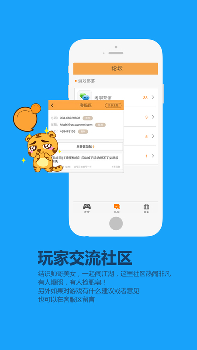 1.老虎平臺(tái)賬號(hào)管理,輕松管理完美手游賬號(hào)~2.精品老虎論壇:結(jié)識(shí)帥哥美女,一起闖江湖,這里社區(qū)熱鬧非凡,有人爆照,有人撿肥皂!