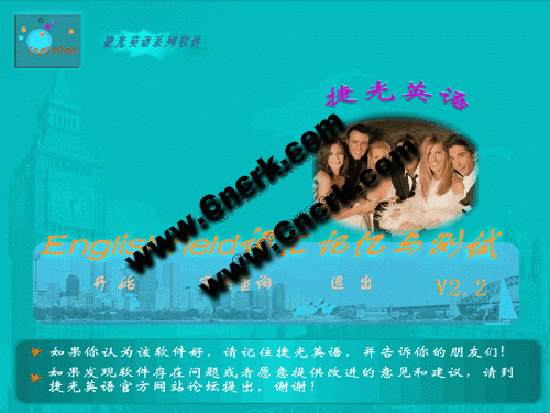 本軟件是捷光英語推出的又一款免費(fèi)軟件,作者通過對數(shù)千份各類英語考試試題、近千篇英文短文、詩詞、演講、課文、小說中約5000萬英語單詞進(jìn)行電腦統(tǒng)計(jì),根據(jù)出現(xiàn)的頻率將8000個(gè)英語單詞進(jìn)行科學(xué)分級,分類為小學(xué)英語、初中英語、高中英語、大學(xué)英語四級、大學(xué)英語六級、托福雅思、專業(yè)英語七類,充分反映了各個(gè)單詞的實(shí)際使用價(jià)值,使用者可以有針對性地進(jìn)行訓(xùn)練,能有效避免重復(fù)學(xué)習(xí),節(jié)約學(xué)習(xí)者的寶貴時(shí)間。學(xué)習(xí)者可以用該軟件來測試自己的英語水平,同時(shí)軟件也設(shè)定了多種學(xué)習(xí)方法,可供學(xué)習(xí)者根據(jù)自己的實(shí)際情況有選擇地進(jìn)行英語詞匯記憶。