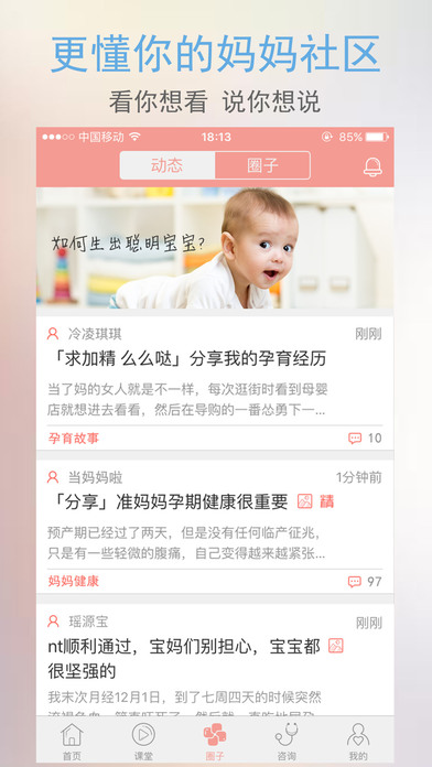 【視頻課堂】豐富的在線課堂,通過專業(yè)醫(yī)生的視頻講演、真實操作、模擬寶寶等方式最直觀地向孕婦演示講解懷孕期間的相關(guān)事項。