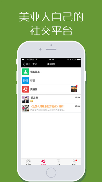 5、美麗圈:提供在美麗圈中可以聊天、發(fā)送文字、語(yǔ)音、表情、圖片視頻等;