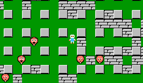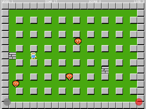 炸彈人是FC上的一款經(jīng)典游戲,不論是游戲的玩法還是游戲中那輕快歡樂(lè)的背景音樂(lè),都讓人記憶深刻。這款游戲的玩法其實(shí)很簡(jiǎn)單,就是地圖上安放炸彈來(lái)消滅所有敵人,然后找到隱藏在磚塊中的門(mén)進(jìn)入下一關(guān)。游戲的每一關(guān)都有不同的地圖和怪物,并且每一關(guān)都有一個(gè)道具隱藏在磚塊中,這些道具有增加可安放炸彈的數(shù)量的,有加快主角移動(dòng)速度的,有控制炸彈爆炸時(shí)間的等等。