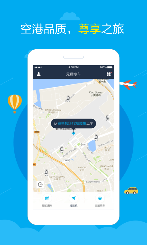 元翔專車是一款機(jī)場快捷接送軟件,用戶可在這里進(jìn)行專車預(yù)約,并且可根據(jù)自己的喜好選擇不同品牌不同型號的汽車,預(yù)約成功后立刻就會有專門的司機(jī)前來為你服務(wù)。