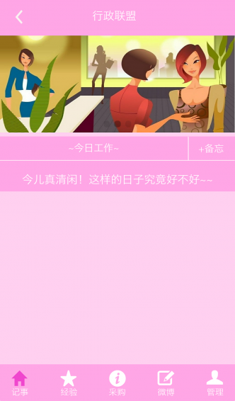 行政聯(lián)盟app是專(zhuān)為公司行政人員打造的應(yīng)用,行政人員能隨時(shí)在平臺(tái)上定制各種工作計(jì)劃,能查看和采購(gòu)公司所需的物資,更能交流各種工作經(jīng)驗(yàn),是行政人員的好幫手。《行政聯(lián)盟》是面向企業(yè)消費(fèi)市場(chǎng)的B2B應(yīng)用,也是企業(yè)行政人員的工作社群。它為行政人員搭建了集“行政辦公”、“社群交流”和“辦公采購(gòu)”為一體的應(yīng)用場(chǎng)景。