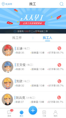 天天早工企業(yè)版app是一款服務(wù)于企業(yè)的招聘軟件,企業(yè)可以隨時隨地在線發(fā)布招工信息,快速招到合適工人團隊,還可以隨時查看工人考勤情況,與工人在線溝通,提高管理效率。