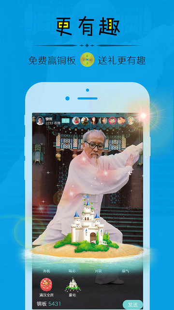 每位用戶都可以通過(guò)直播或者觀看直播等,免費(fèi)贏取銅板,并可以用銅板為主播贈(zèng)送禮物,對(duì)聯(lián)、福字,玩法多多更有趣。