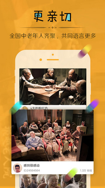 友瓣直播注冊(cè)僅對(duì)當(dāng)年達(dá)到50歲及以上的用戶開(kāi)放,為50歲以后的用戶打造同齡人直播社交平臺(tái),讓交流環(huán)境更單一,同齡人在一起更多共同語(yǔ)言。