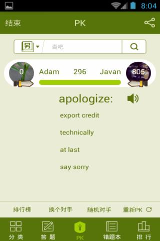 全球最受歡迎的FreeRice沒有app,另客網(wǎng)的單詞小麥(FreeWheat) 不僅彌補(bǔ)了這個(gè)空白,而且在多方面作了改進(jìn),包括更大的詞庫和更豐富的分類、可選適合自己的級(jí)別、實(shí)時(shí)動(dòng)態(tài)顯示詞匯量、單詞和例句都有發(fā)音、五部在線詞典任選、長(zhǎng)按即得發(fā)音和近義詞、可隨時(shí)查看錯(cuò)題并復(fù)習(xí)、也可隨時(shí)找網(wǎng)友 PK 對(duì)練,等等。 更多驚喜盡在另客【更新日志】