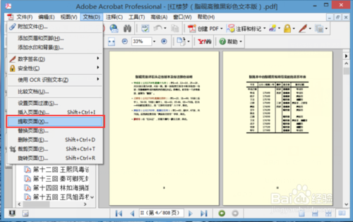 使用Adobe Acrobat打開(kāi)待處理的pdf文檔,示例中為《紅樓夢(mèng)》的電子書(shū)。