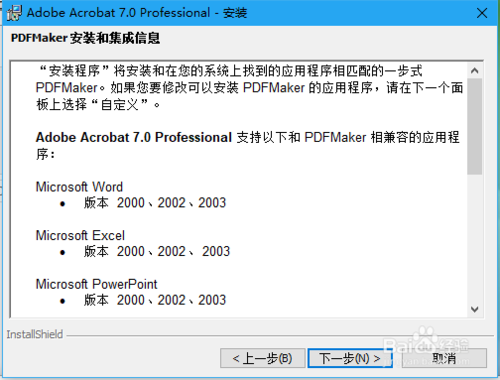 在Adobe Acrobat 7.0 Professional安裝用戶信息界面,輸入用戶名、序號(hào),點(diǎn)擊下一步,PDFMarker安裝和集成信息窗口點(diǎn)擊下一步按鈕。