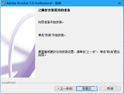 在Adobe Acrobat 7.0 Professional安裝已做好安裝程序的準(zhǔn)備,點(diǎn)擊安裝按鈕,正在安裝Adobe Acrobat 7.0 Professional直到進(jìn)度條全部加載完成,點(diǎn)擊完成。