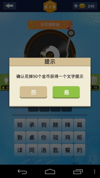 全民猜歌曲:有沒有那么一首歌,會讓你輕輕跟著和?有沒有那么一首歌,會讓你輕輕想起我?當熟悉的旋律再次響起的時候,你心中是否也會蕩起層層漣漪?《全民猜歌曲》讓你回憶老歌,聆聽新歌,在歌曲的旋律中陶醉?!度癫赂枨肪x幾百首經(jīng)典老歌,精品新歌,每段歌曲15秒鐘,請你在聽完后選擇正確的歌曲名稱即可過關(guān)。《全民猜歌曲》準備好了,你的耳朵準備好了嗎?讓我們?nèi)癫赂枨?,一起瘋狂?