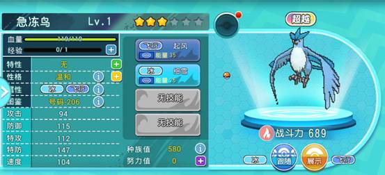 急凍鳥技能以冰屬性為主,飛行屬性為輔,技能傷害一般,對(duì)戰(zhàn)中主要以消耗為主。