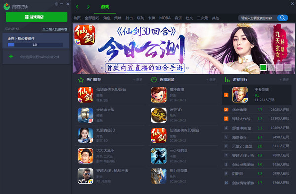 6.游戲安裝,左側(cè)大廳如果有你喜歡的游戲,將鼠標(biāo)移動到該游戲附近,出現(xiàn)開始游戲按鈕。