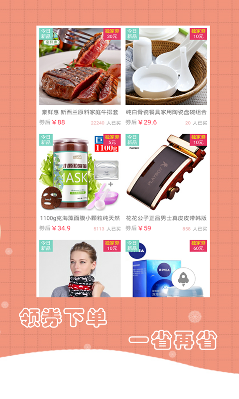 領(lǐng)淘券是一款手機網(wǎng)購服務軟件,該軟件可為用戶提供一個超大的購物商城,你能在這里看到各種各樣的精美商品,并且每天都有優(yōu)惠券贈送,讓你以最低的價格買到最優(yōu)質(zhì)的商品。