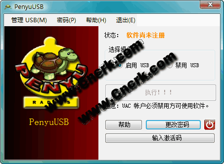 PenyuUSB 可以控制 USB 大容量存儲設(shè)備以免于被病毒傳播或被竊取數(shù)據(jù)。管理員使用密碼即可啟用或禁用 USB 設(shè)備,非常適用于學?;虼髮W計算機,也適用于商用用途。比如:阻止學生使用未授權(quán)的 USB 設(shè)備;避免敏感的商業(yè)數(shù)據(jù)經(jīng)由 USB 設(shè)備傳播或被竊取