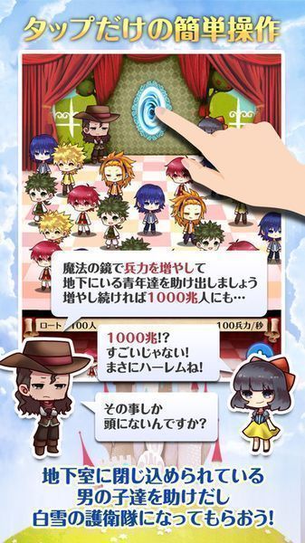 很久很久以前的某天在王宮內(nèi)散步的白雪公主,路過王后的房間時(shí)聽到了奇怪的聲音:“鏡子啊鏡子!快映出這個(gè)國(guó)家的美男吧!”好奇的白雪公主扒開門縫,發(fā)現(xiàn)王后面前的鏡子中出現(xiàn)了一位十分帥氣的青年,隨后,王后拉起這位青年的手消失在了房間的盡頭?!皠偛攀鞘裁垂??”不過她立刻停止了詫異,產(chǎn)生了一個(gè)新的想法——“我把這面有魔力的鏡子偷過來研究一下不就好了?”就這樣,白雪公主與11位美男的故事,就此拉開了帷幕。
