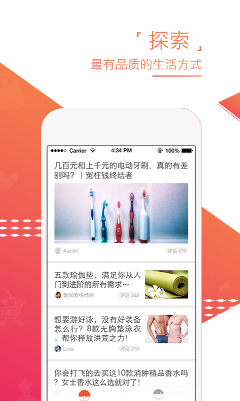 1、「探索」最有品質(zhì)的生活方式這里匯聚愛(ài)生活、有品位的生活達(dá)人,分享實(shí)用、有趣、高顏值的生活好物和選購(gòu)心經(jīng),帶你體驗(yàn)有態(tài)度的生活方式,從此不再花冤枉錢。