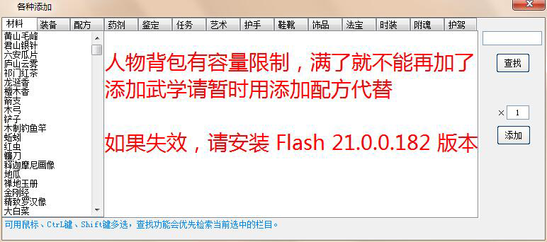 各種添加:可以添加物品、配方、裝備、內(nèi)功、招式、好感度