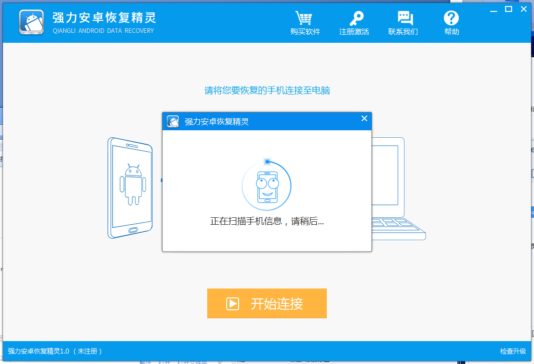 一、安裝并運(yùn)行強(qiáng)力安卓恢復(fù)精靈,同時(shí)將手機(jī)連接到電腦上。