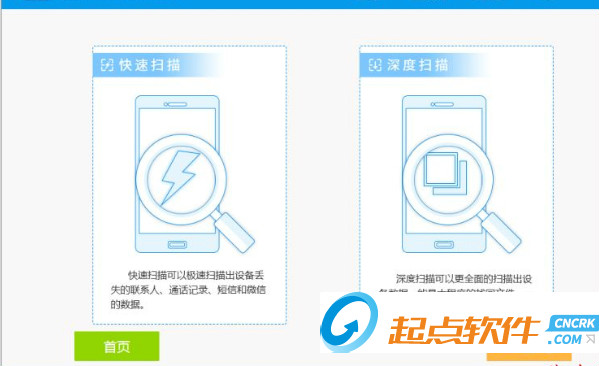 讀取成功之后,在界面的上方顯示有設(shè)備的名稱(chēng)、系統(tǒng)的版本、連接的狀態(tài),粗略查看之后要選擇下方兩種掃描模式中的一個(gè)來(lái)對(duì)手機(jī)進(jìn)行掃描,這里選擇“快速掃描”即可。