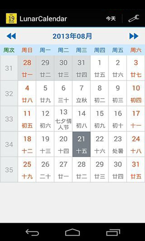 簡(jiǎn)潔中華農(nóng)歷是一款支持農(nóng)歷查詢(xún)的手機(jī)軟件,用戶(hù)可以通過(guò)簡(jiǎn)潔中華農(nóng)歷便捷的查詢(xún)公歷,農(nóng)歷,節(jié)氣,節(jié)假日等等信息,不僅功能多樣而且界面也十分的簡(jiǎn)單,使用起來(lái)也非常的方便。