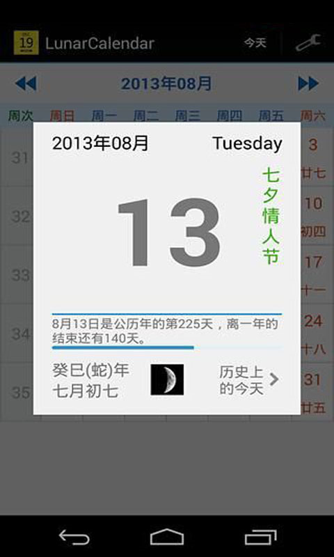 簡(jiǎn)潔中華農(nóng)歷app具有公歷,農(nóng)歷,節(jié)氣,節(jié)假日(大陸,臺(tái)灣,港澳),月相圖等功能。軟件亮點(diǎn)為零權(quán)限,作為國(guó)產(chǎn)軟件非常的良心。