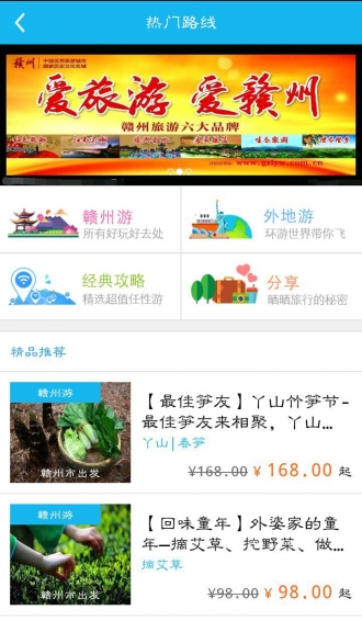 “贛州智慧旅游”平臺(tái)是由贛州市旅游發(fā)展委員會(huì)與贛州科睿特軟件股份有限公司聯(lián)合打造的贛州官方旅游平臺(tái)。本平臺(tái)信息涵蓋贛州本地及周邊的海量旅游資訊,致力于服務(wù)外地來(lái)贛游客及贛州本地市民。“贛州旅游”APP應(yīng)用不僅為游客提供在線優(yōu)惠購(gòu)票、景點(diǎn)導(dǎo)覽、路線導(dǎo)航、線路預(yù)訂、智能推送等服務(wù),更融合了酒店預(yù)約、餐廳預(yù)訂、在線購(gòu)物、出行服務(wù)等旅游周邊行業(yè)服務(wù)。平臺(tái)重點(diǎn)打造“周末去哪”中的鄉(xiāng)村旅游模塊,讓您回歸鄉(xiāng)村、感受農(nóng)趣;平臺(tái)的“在線商城”中有大量贛南本地農(nóng)特山珍展銷,使您能夠購(gòu)買到物美價(jià)廉的贛南農(nóng)特產(chǎn)品。