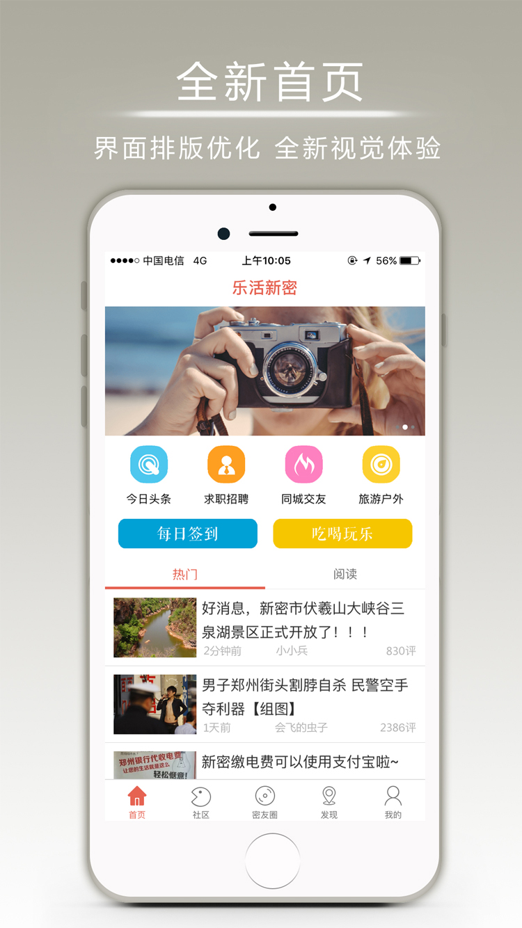 樂(lè)活新密app,一個(gè)深受新密本地用戶(hù)信賴(lài)的同城社區(qū)APP。資訊、便民、社交、服務(wù)···應(yīng)有盡有。我們的口號(hào)是:樂(lè)在新密,享受生活!讓新密人的生活更精彩!