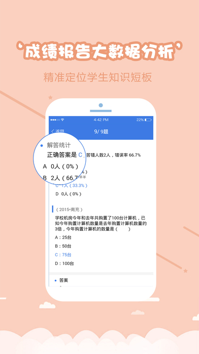 1、老師可15秒布置一次作業(yè),10秒發(fā)送一次富媒體的班級消息,作業(yè)批改進(jìn)入移動時代,老師再也不抓狂啦2、國內(nèi)第一家真正實(shí)現(xiàn)移動設(shè)備上使用智能筆做主觀題的應(yīng)用,徹底打破在線作業(yè)類應(yīng)用只能做客觀題的尷尬,實(shí)現(xiàn)測練過程的閉環(huán)