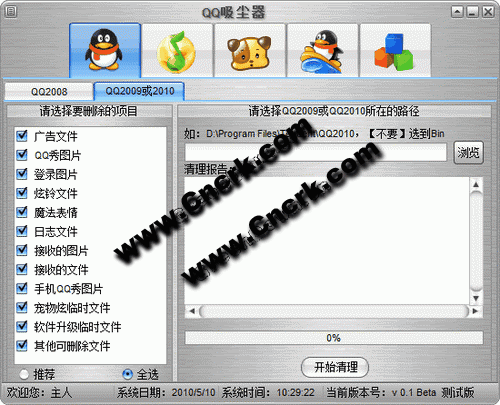 可以清理: QQ2008,QQ2009,QQ2010 QQ音樂2010 QQ游戲2010 QQ寵物 可去除QQ音樂2010的廣告主界面