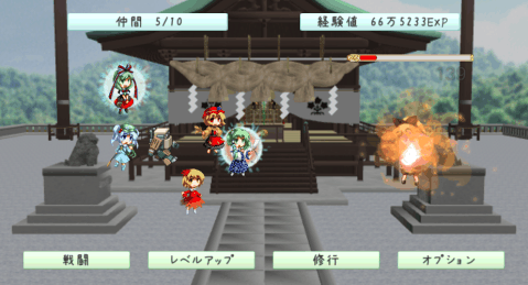 東方紅防錄同類游戲,一樣簡(jiǎn)單的界面。分為戰(zhàn)斗、升級(jí)、修行、設(shè)定四個(gè)部分。戰(zhàn)斗部分,人物會(huì)自動(dòng)戰(zhàn)斗,戰(zhàn)勝敵人會(huì)獲得經(jīng)驗(yàn),經(jīng)驗(yàn)可以用來(lái)升級(jí)人物和解鎖新的人物。修行有一定成功率,成功可以獲得一定經(jīng)驗(yàn),修行中的人物無(wú)法參與戰(zhàn)斗。來(lái)一起解鎖東方里的妹子們吧!