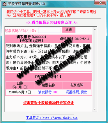 我們知道,每個網(wǎng)站都有自己的千股千評,而且只顯示當天的數(shù)據(jù),第二天就不會顯示前一天的專家點評。而我們這個工具集成了新浪千股千評,全景網(wǎng)千股千評,和訊網(wǎng)千股萬評,提供年月日方式查詢,而且可以查看最新30日的專家數(shù)據(jù),非常方便。