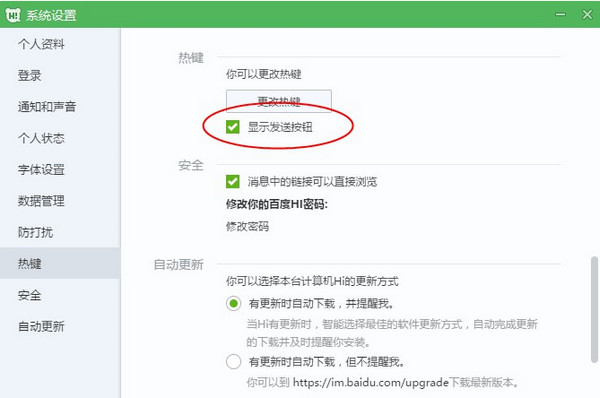 【設(shè)置】—>【熱鍵】—>勾選【顯示發(fā)送按鈕】