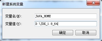 3..在系統(tǒng)變量處點(diǎn)擊新建,在變量名處填入JAVA_HOME;變量值處填入安裝路徑,例如:D:\JDK_1.8_64