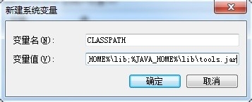 4.再次點(diǎn)擊新建,在變量名處填入CLASSPATH;變量值處填入.;%JAVA_HOME%\lib;%JAVA_HOME%\lib\tools.jar