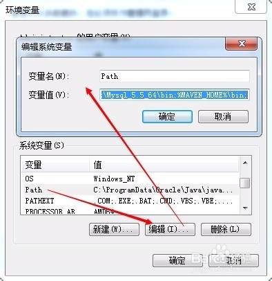 5.完成后,在系統(tǒng)變量里找到path,點(diǎn)擊編輯,在變量值里的最前面輸入.;%JAVA_HOME%\bin;完成后點(diǎn)擊確定。