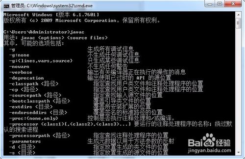 7.輸入javac,會(huì)出現(xiàn)如圖所示: