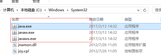 然后可能還會(huì)不行,因?yàn)镃:\Windows\System32下面還有三個(gè)文件java.exe、javaw.exe和javaws.exe,也需要?jiǎng)h了。