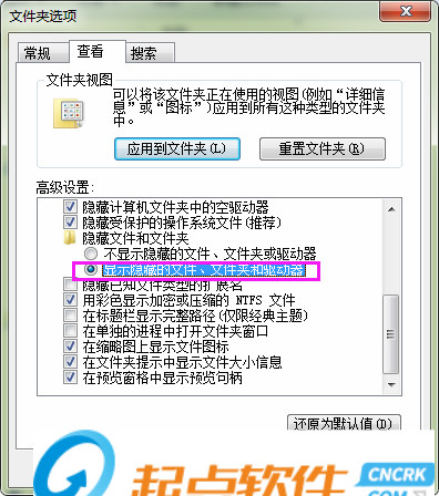 1.進(jìn)入c盤(pán),組織-文件夾和搜索選項(xiàng)-查看