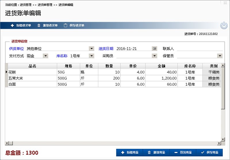 1 進(jìn)貨管理:進(jìn)貨賬單的維護(hù)、進(jìn)貨賬單的瀏覽、歷史進(jìn)貨單付款、進(jìn)貨報(bào)表。
