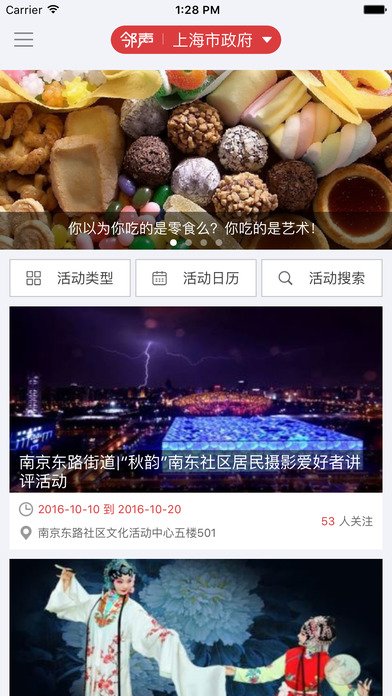 民生公益活動的預告、展示、點評平臺。活動板塊收納全年8萬場活動,通過LBS功能,精準推送給社區(qū)居民?;顒影鍓K還將不定期開展搶票活動,帶你免費玩轉上海。